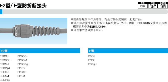 ·請在標準接頭型號的型式末尾處插入J字樣。(例:E2BG0816安裝有防折斷螺帽的型號為E2BGJ0816)