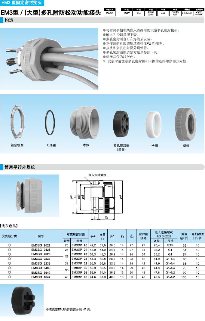 ·可密封多根電纜嵌入連接用的大型多孔密封接頭。