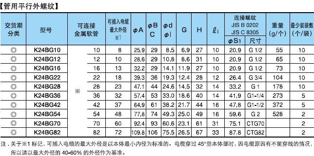 ·表中的[可連接金屬軟管]欄內的※號代表KMV、KMS、KIV、KIH、KPF、KIC、KPBF、KMB、KIB。