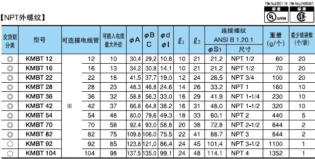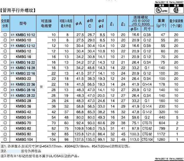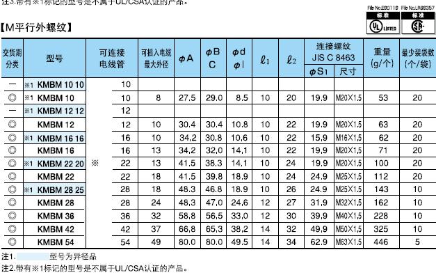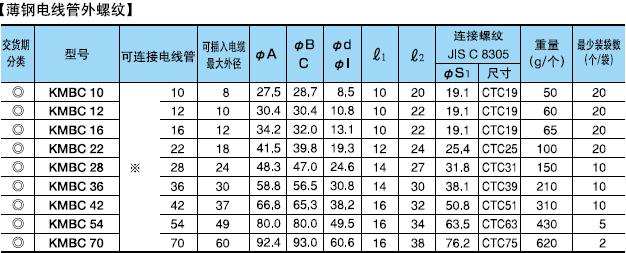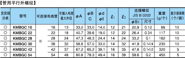 ·表中的[可連接金屬軟管]欄內(nèi)的※號(hào),代表KMV、KMS、KPF、KIC、KIH、KIV、KPBF、KUU、KCS、KMB、KIB、KM、KI。