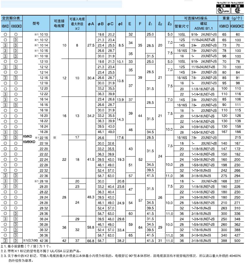 ·表中的[可連接金屬軟管]欄內(nèi)的※號,代表KMS、KMV、KPF、KIC、KIH、KIV、KPBF、KUU、KCS、KMB、KIB、KM、KI。