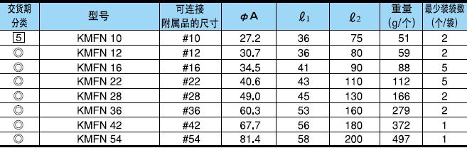 ·訂貨批量3根以上時,護網螺帽不作為部品、可作為護網接頭訂貨。此種情況下,請在KM型附屬品的型號后加入N字樣(例:KMBGN16)。