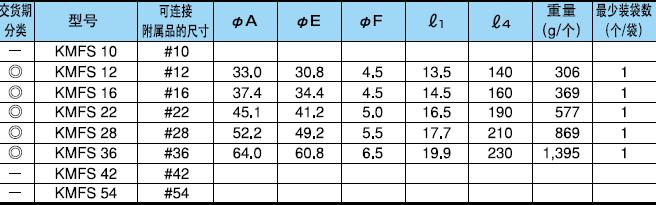 ·訂貨批量3根以上時,彈簧螺帽不作為部品、可作為彈簧街頭訂貨。此種情況下,請在KM型附屬品的型號后加入S字樣(例:KMBGS16)。