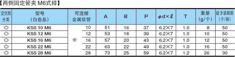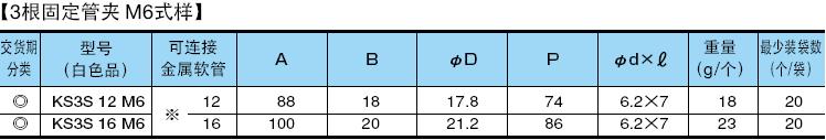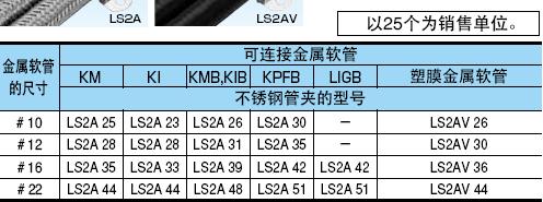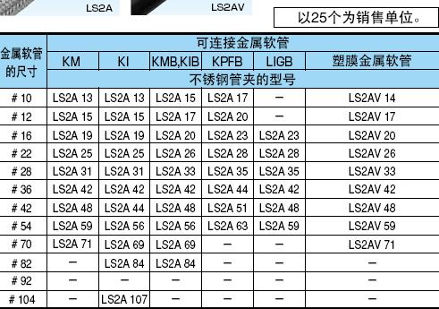 ·表中的[塑膜金屬軟管]欄內的※號,代表KPF、KMS、KMV、KPBF、KIC、KIH、KIV、KUU、KCS。