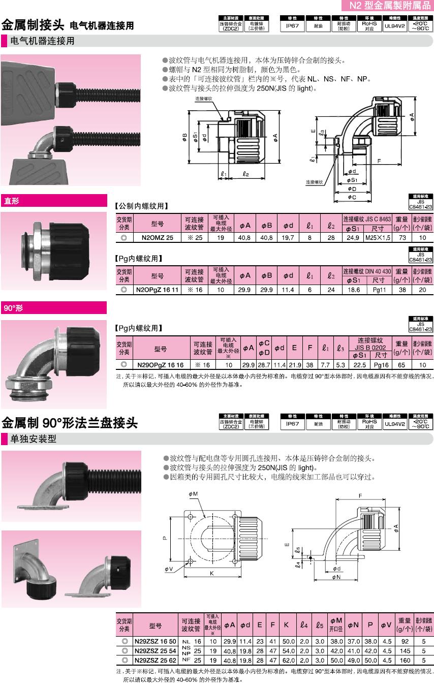 ·波紋管與電氣機器連接用,本體為壓鑄鋅合金制的接頭。